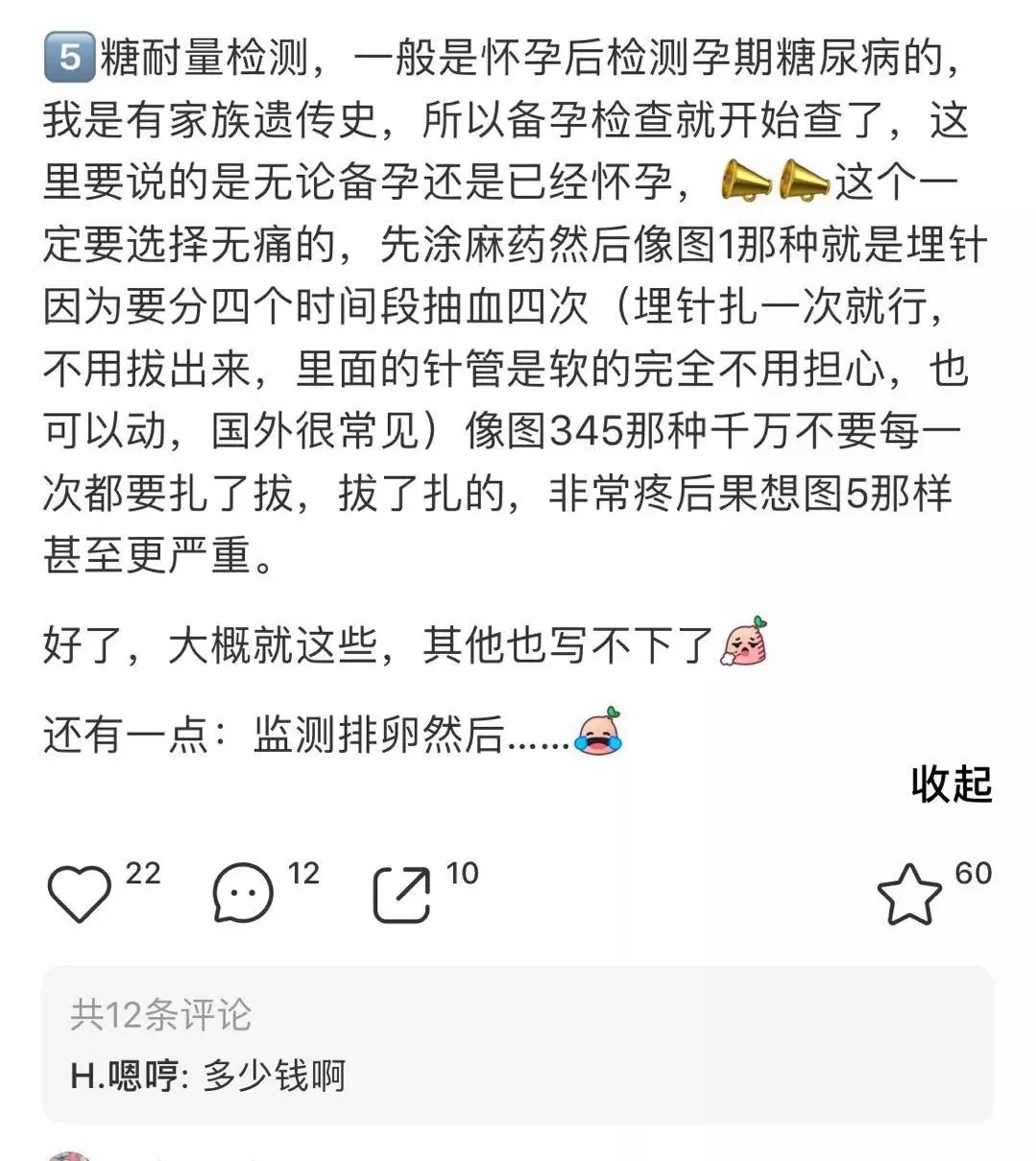 ●“糖耐要扎好几次针,手扎的像马蜂窝一样!”